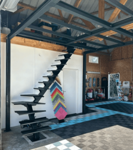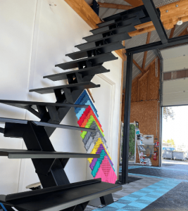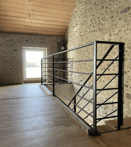 – Garde-corps sur moitié haute de l’escalier et sur les 8 mètres de la mezzanine.