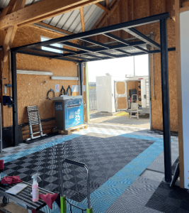 Une structure en acier brut vernis avec boulonnerie apparente
