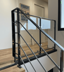 Gardes-corps mêlant l’acier et le verre pour un résultat sobre et aéré.