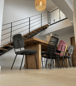 Un escalier droit avec ses marches en frêne massif de plus de 1m10 !